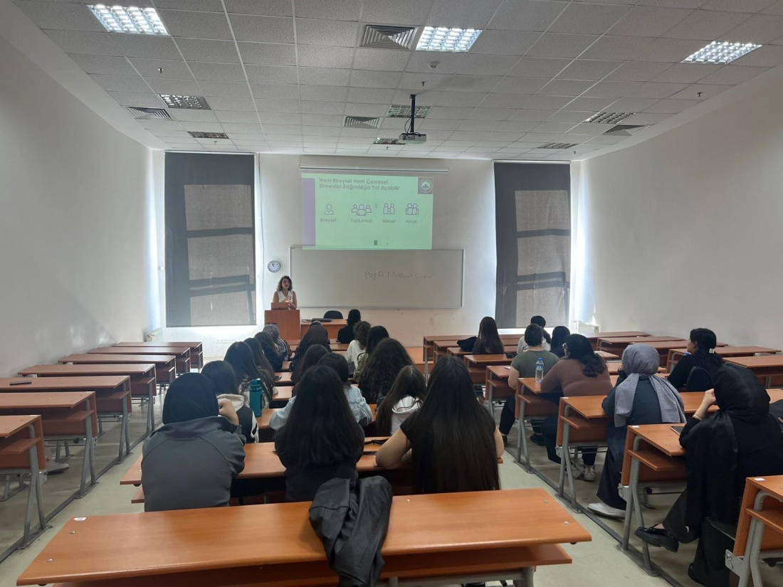 Oryantasyon sürecinde öğrencilerimize bölüm tanıtımı, ders programı, staj süreçleri ve işleyiş hakkında bilgiler verildi. Ayrıca üniversitemizin genel tanıtımı kapsamında; derslikler, kütüphane, konferans salonları, laboratuvarlar, sosyal yaşam alanları vb. olanaklar hakkında bilgilendirme yapıldı. Program, öğrencilerin sorularının yanıtlanmasıyla tamamlandı.
